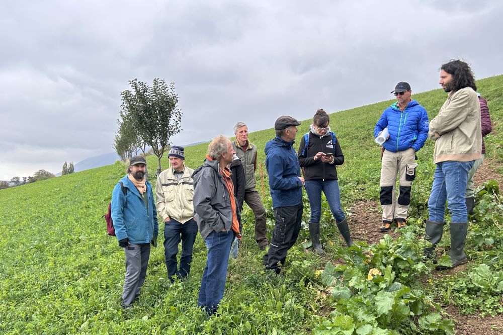 Une dizaine de personnes ont pris part en novembre dernier à la journée Agroforesterie organisée par le FiBL dans deux exploitations du canton de Neuchâtel. Objectif, comprendre les motivations des exploitations, leurs approches, leur vision de l'intégration de l'arbre dans leur stratégie de production agricole.