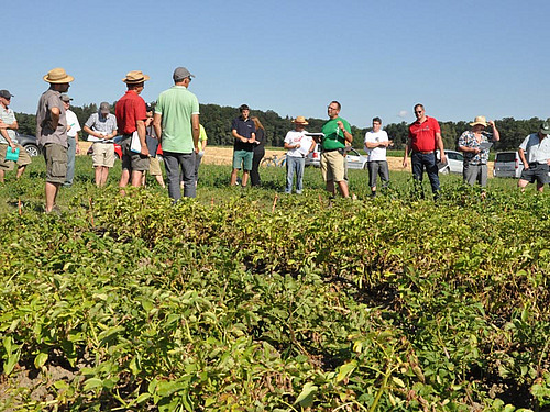 La semaine dernière a eu lieu une visite de culture dans le champ d'essais de l'entreprise agricole Rathgeb Bio à Unterstammheim (ZH). Des producteurs, des commerçants ainsi que des représentants d'Agroscope et du FiBL étaient présents.