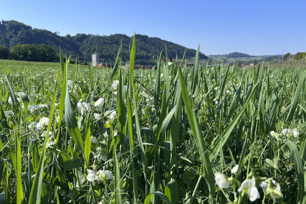 Intégrer des légumineuses, comme le pois, dans les mélanges fourragers ou en cultures associées pour stimuler leur fixation d'azote. Photo Claire Berbain, FiBL