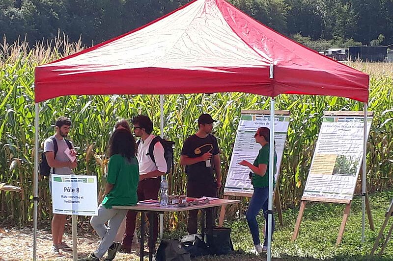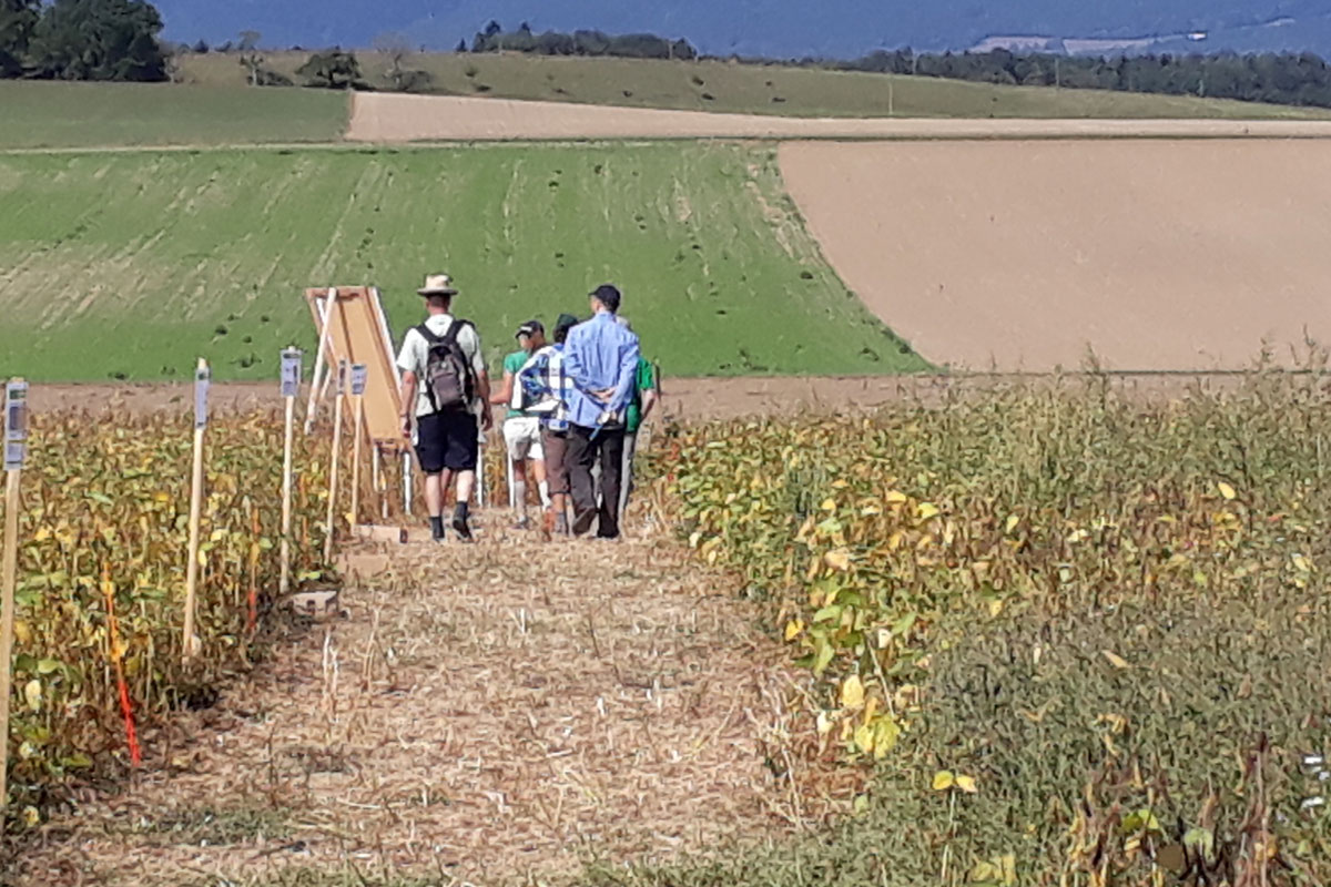 Il était également possible de visiter un essai de variétés de maïs hybrides ou non hybrides, en pur ou associés à des haricots. Les questions suivantes ont en particulier été discutées: de quelle génétique avons-nous besoin pour les maïs de l'avenir? Aurons-nous bientôt dans les listes variétales des variétés de maïs moins gourmandes en azote que les variétés actuelles, et plus résistantes aux aléas du climat? Les maïs non hybrides ont-ils un intérêt?