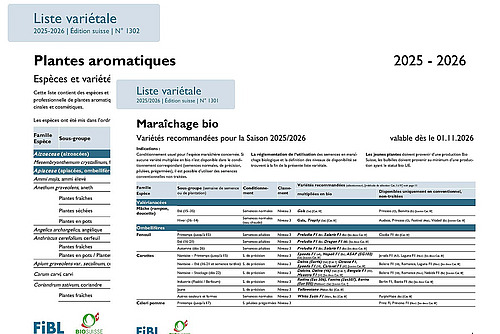 Les listes variétales sont disponibles en téléchargement gratuit dans la boutique en ligne du FiBL: