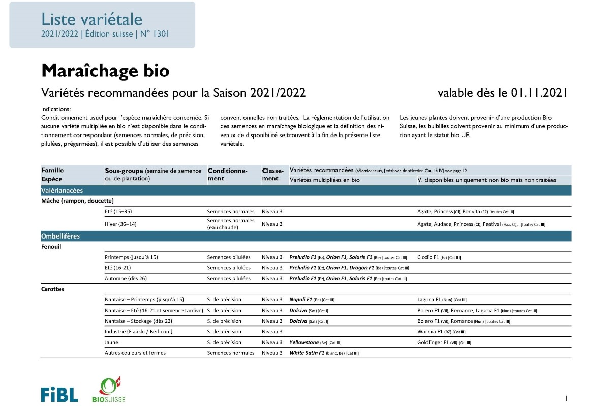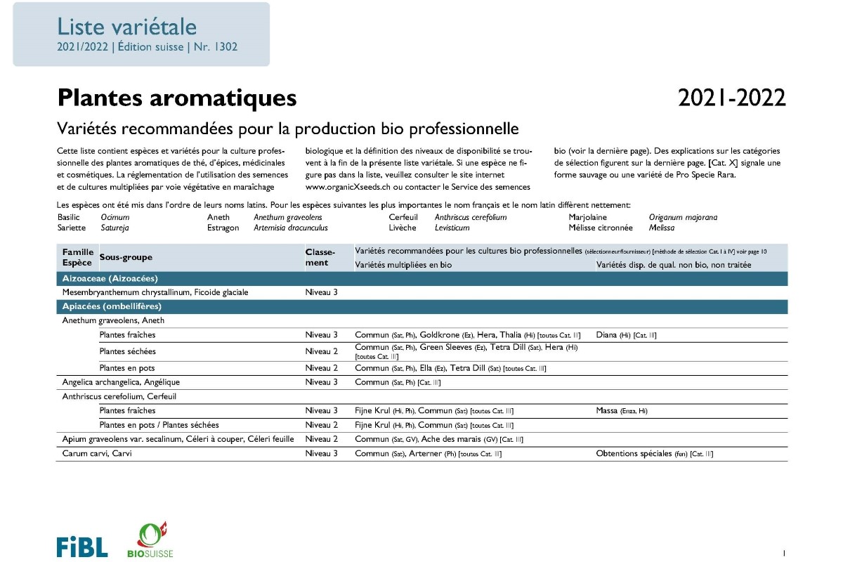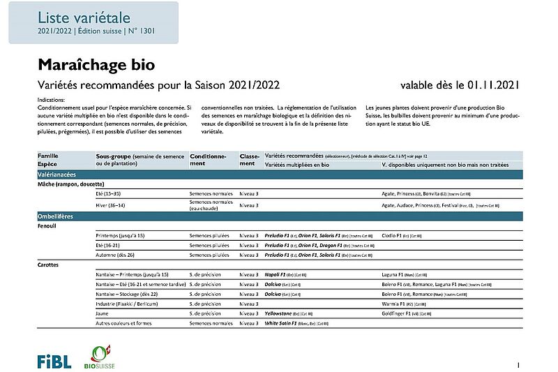 Les listes du FiBL des variétés recommandées en culture biologique de légumes et d'herbes aromatiques ont été mises à jour pour la saison de culture 2021/2022, et peuvent être téléchargées dès maintenant dans la boutique en ligne du FiBL. La liste des espèces et variétés d'herbes aromatiques recommandées en culture biologique a été progressivement élargie pour cette édition, mais cela n'a pas encore d'impact sur le niveau de disponibilité.