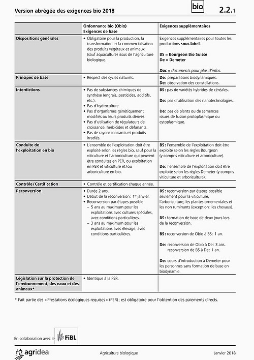 Abrégé des exigences bio 2018 (Boutique du FiBL)