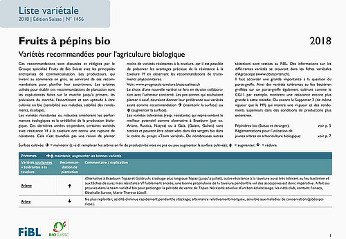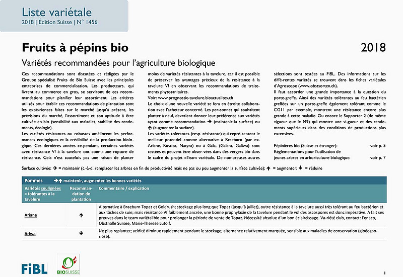 ette liste permet aux producteurs planifiant un nouveau verger dont les fruits sont destinés à la grande distribution de faire des choix judicieux. Dans la publication, on trouve également la liste des fournisseurs de jeunes arbres bio ainsi que des aspects de la réglementation bio qui concernent les jeunes arbres.