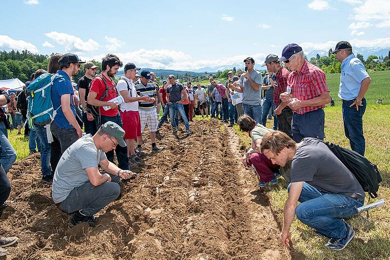 Des experts répartis sur 17 postes thématiques que les visiteurs pouvaient choisir librement ont transmis des connaissances sur diverses grandes cultures biologiques comm p. ex. la betterave sucrière, le colza, la pomme de terre, le maïs et le blé ainsi que des alternatives dont entre le millet, l'avoine alimentaire ou le lin. Les visiteuses et visiteurs ont pu discuter de leurs questions, idées et expériences directement avec des expert-e-s et des collègues. De nombreux thèmes concernant le sol ont été a bordés, et il y avait des démonstrations des plus récents développements dans le domaine du désherbage.
