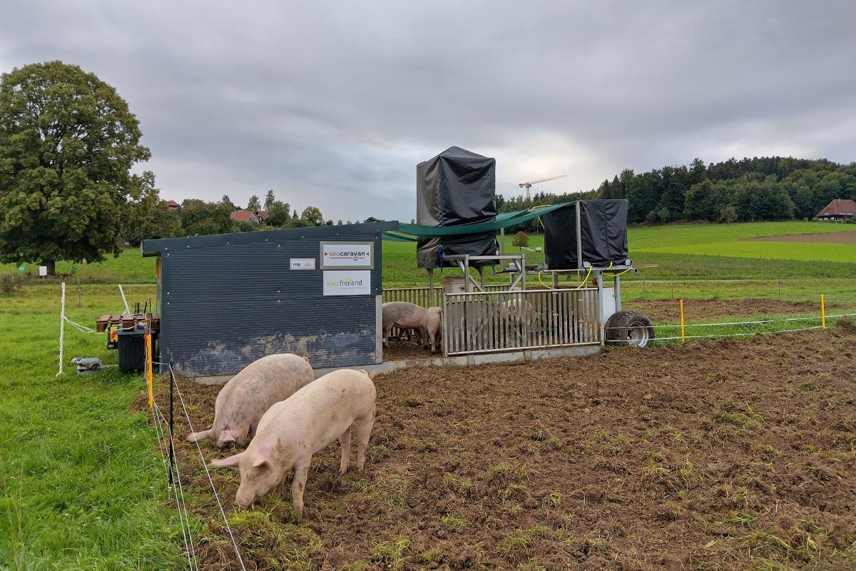 Pour permettre d'acquérir des expériences et d'étudier les influences du système sur le sol, le prototype est testé dans la pratique et continuellement modifié pendant trois ans en collaboration avec des entreprises agricoles et KAGfreiland. L'objectif du projet est le développement d'un système nouveau et utilisable dans la pratique pour la production porcine en plein air.