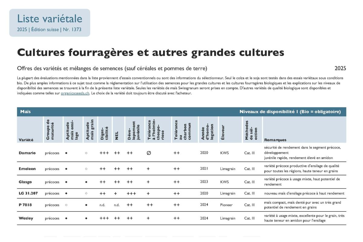 Liste variétale «Cultures fourragères et autres grandes cultures» (rubrique Recherche de variétés)