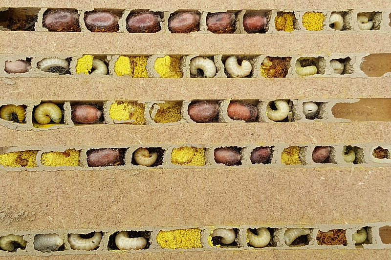 Les abeilles sauvages se distinguent fortement les unes des autres et ce, à bien des égards. Chaque espèce dispose d'une période d'activité propre, qui ne dure généralement que six à dix semaines, pendant laquelle elle vole et butine des fleurs. De nombreuses espèces se sont en outre spécialisées sur certaines espèces végétales, dont elles récoltent le pollen et le nectar. En matière de nidification également, les différentes espèces font preuve d'une diversité impressionnante: certaines construisent leurs nids avec du mortier, d'autres vivent dans des coquilles d'escargots, quand d'autres encore creusent des trous dans le sol ou s'installent dans des galeries de vers dans le bois mort. Même au sein d'une même stratégie, les exigences varient considérablement: chaque espèce d'abeille sauvage a ses préférences en matière de types de sol, de couverture végétale, de conditions d'humidité ou d'exposition.