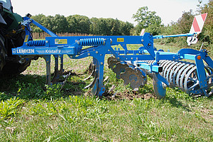 Le travail des chaumes revêt une importance capi tale dans l'agriculture biologique. Il est effectué au moment le plus propice pour réguler les graines et surtout les racines des adventices. Une sécheresse prolongée après la récolte permet de circuler sur le sol même avec des machines relativement lourdes, de le travailler plusieurs fois et de laisser sécher les racines d'adventices ramenées à la surface. Lorsque le risque malherbologique est élevé, il n'est pas re commandé de semer un couvert végétal immédia tement après la récolte du colza ou des céréales et de renoncer ainsi à tout déchaumage.