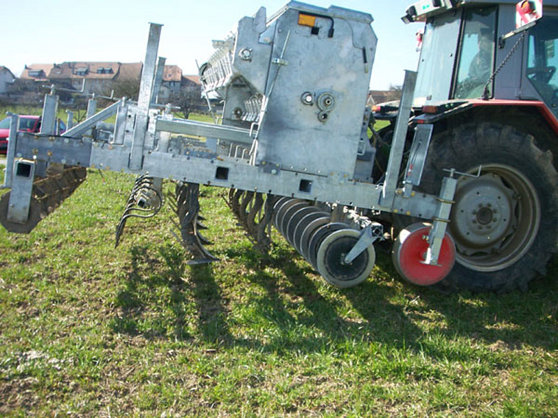 - Je sème du trèfle souterrain avec un semoir Krummenacher monté sur le semoir à céréales.