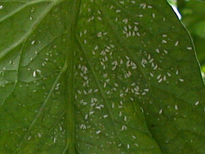 Cet insecte suceur endommage d'abord les feuilles puis les fruits. Ses piqûres, qui ressemblent à des piqûres d'épingles, provoquent des malformations des fruits. Ces derniers temps, les dégâts sur poivrons ont de plus en plus souvent provoqué le refus de lots de poivrons par les acheteurs, causant ainsi d'importantes pertes financières.