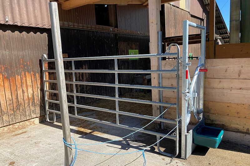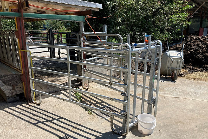 Pour l’abattage à la ferme, les animaux sont la plupart du temps habitués à être immobilisés dans un dispositif ad hoc placé dans le parcours. Deux firmes ont déjà de telles installations sur le marché.