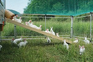 Au printemps et en été 2018, Kagfreiland a testé une lapinière mobile. Les lapins l’en ont remerciée par une bonne santé et de bonnes performances de croissance et d’engraissement.