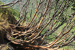L'aulne vert (Alnus viridis) est l'espèce arbustive qui se répand le plus dans les Alpes européennes. Cet arbuste indigène pousse incroyablement vite et forme des houppiers de deux à trois mètre de haut, avec des branches ascendantes arquées partant de souches qui tendent à se propager de manière clonale. Il produit aussi d'énormes quantités de graines dispersées par le vent et les branches coupées s'enracinent rapidement. Cependant, sa caractéristique la plus importante en termes de vitalité et de vitesse de croissance est sans doute sa capacité à fixer l'azote: grâce à la symbiose avec des bactéries Frankia, l'aulne vert transforme une énorme quantité d'azote atmosphérique (N2) en composés azotés minéraux. Les aulnes verts peuvent donc rapidement envahir les prairies qui ne sont plus utilisées.